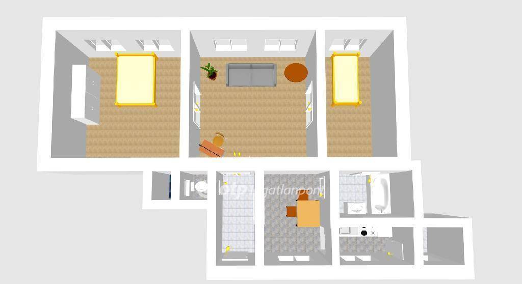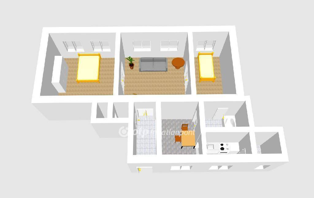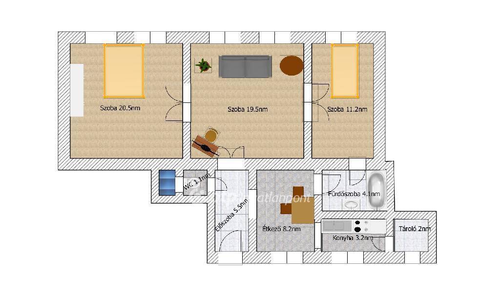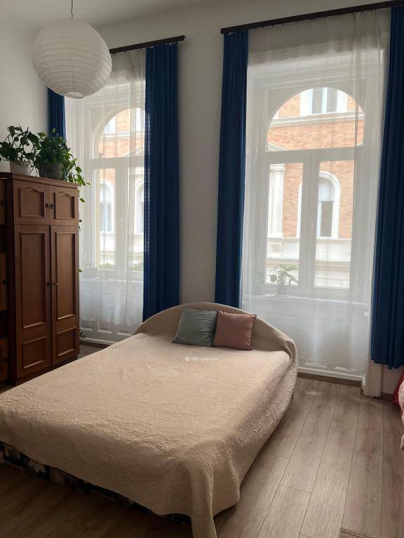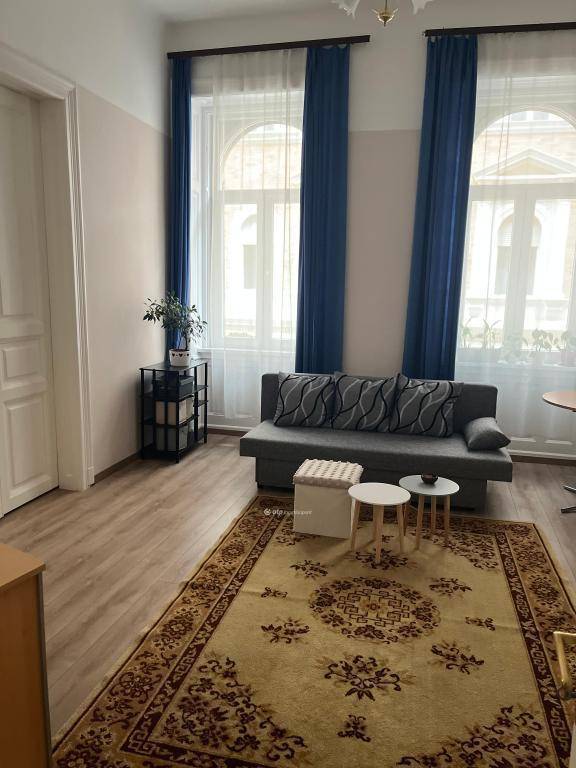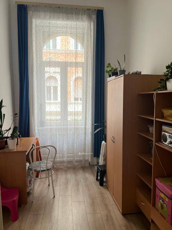 A lakás 3 szobás, tágas, világos, első emeleten elhelyezkedő és egy csendes kis utcára valamint a belső udvarra néz, nincs zajterhelése.