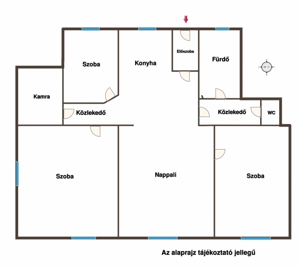 A lakás elrendezése rendkívül praktikus és kényelmes életteret biztosít.