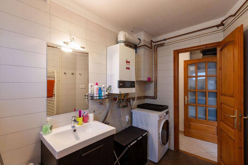 A fűtésről és melegvízről kondenzációs kazán gondoskodik, amelyet 2025-ben cseréltek újra. Minden szoba klímával felszerelt, a lakás riasztórendszerrel védett.