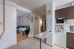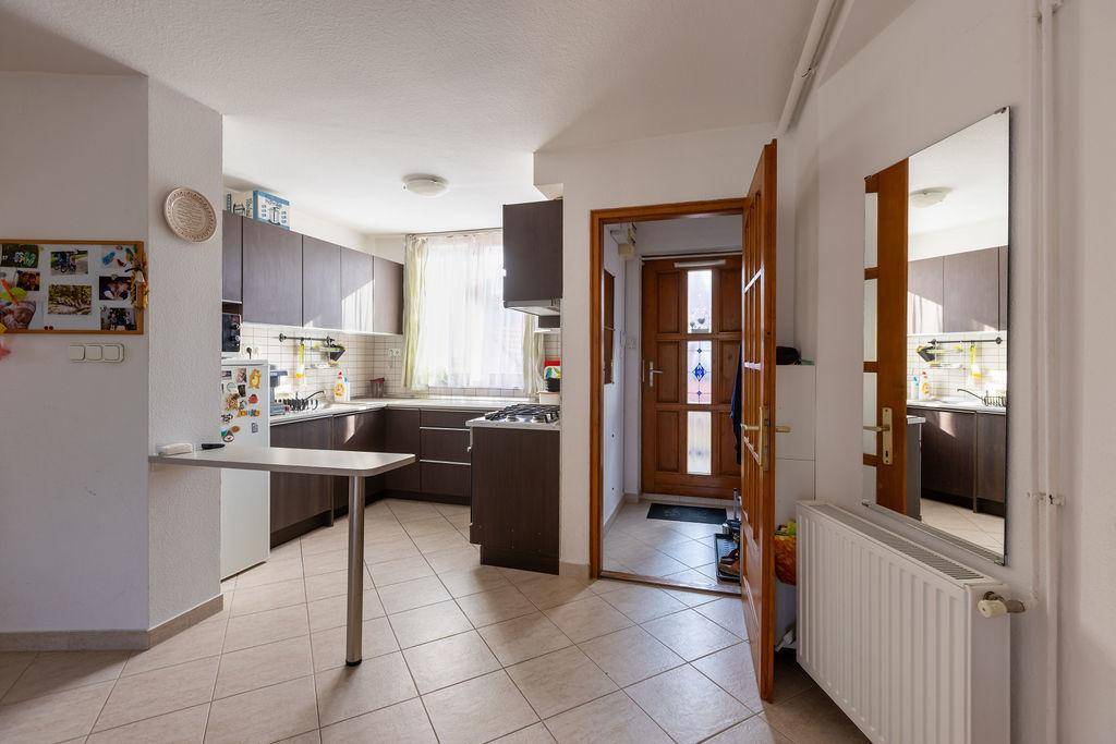 Az előszobából a tágas és napfényes konyhába és nappaliba érkezünk, ahol a konyha, az étkező és a nappali jól elkülönül egymástól, de mégsem teljesen szeparált.