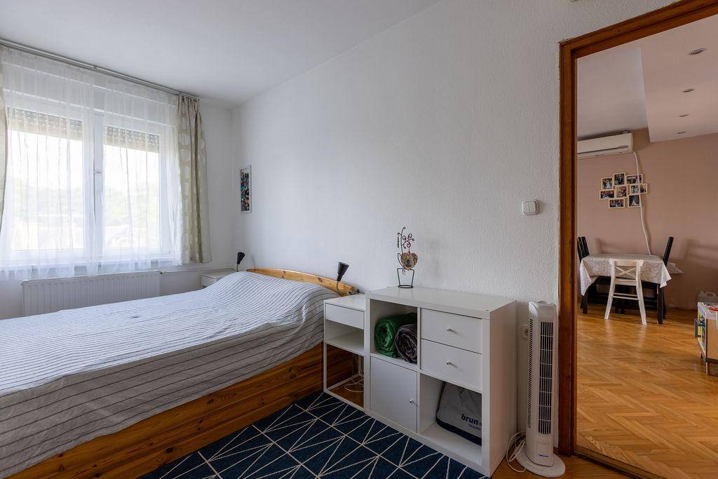 Emellett 3 külön nyíló szoba, egy nagyméretű fürdő, külön toalett és egy praktikus kamra alkotja otthonunkat.