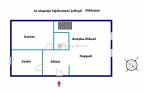 A földszinten tágas nappali és konyha, valamint fürdőszoba zuhanyzóval és WC-vel, kézmosóval kapott helyet.