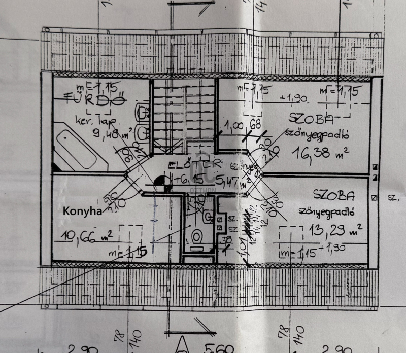 - szerkezet : 40 cm porotherm tégla + 5 cm hungarocell szigetelés
