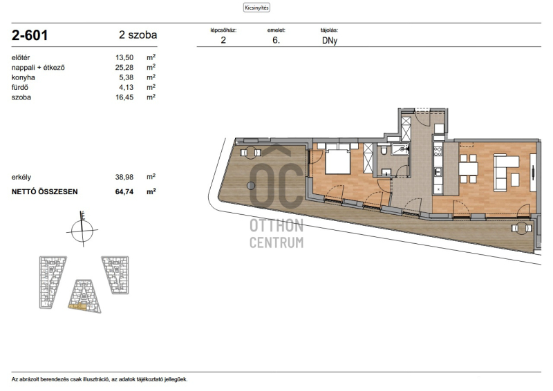 Az ingatlan nettó alapterülete 64,82 m² + 38,98 m² terasz.