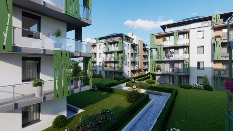 Figyelembe véve a jövő elvárásait, a társasház modern, környezetbarát, mennyezeti hűtő, -fűtő rendszerrel ellátott.