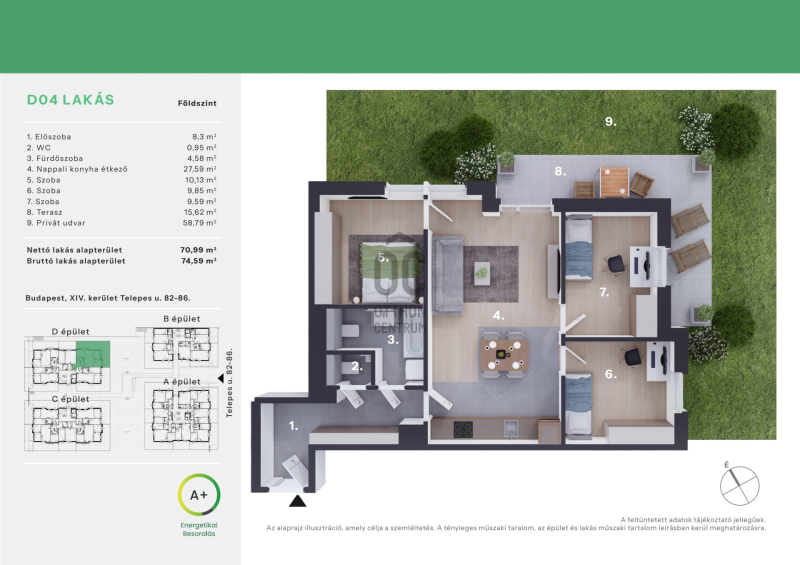 A jelen adatok tájékoztató jellegűek, ezért a Beruházó (sem a hirdető) azok változásával, vagy bármely attól való eltéréssel kapcsolatban semmilyen kötelezettséget, vagy felelősséget nem vállal.