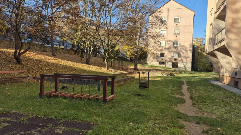 - a ház mellett park, játszótér található