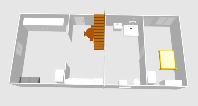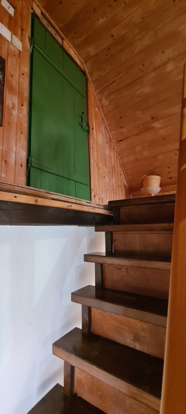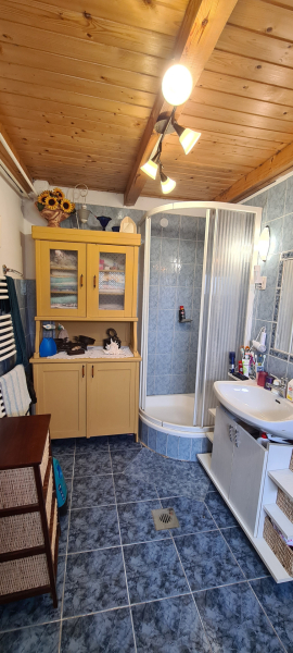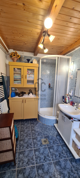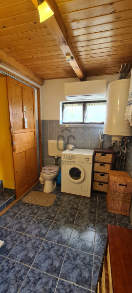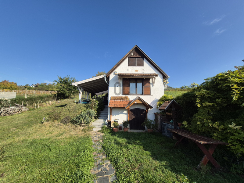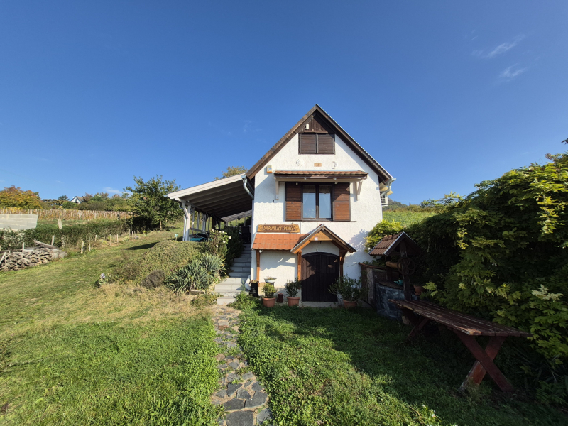 A téglalap alakú telek közepén helyezkedik el az épület, és csak egy közeli szomszédja van. Az alsó szinten találunk egy konyha-étkező-nappalit, egy fürdőszobát, és egy hálószobát, mely közvetlen terasz kapcsolatos, míg a tetőtérben egy-légterű szoba lett kialakítva. A 15nm-es borospince a nappali alatt húzódik, külső bejáraton át közelíthető meg. Az ingatlan víz, villany közművekkel rendelkezik, meleg víz ellátását villany bojler adja, melyre a napelem is rásegít, ha szükséges.