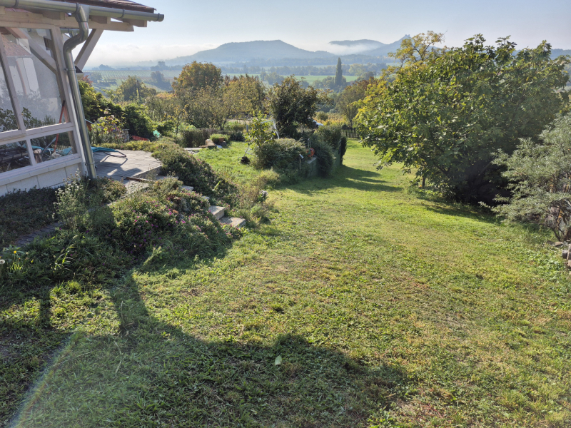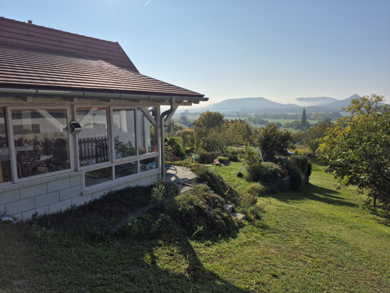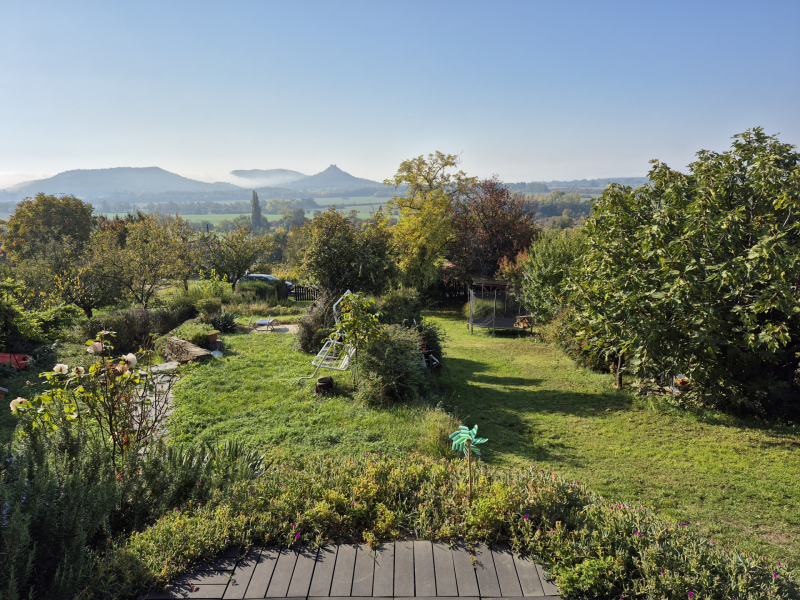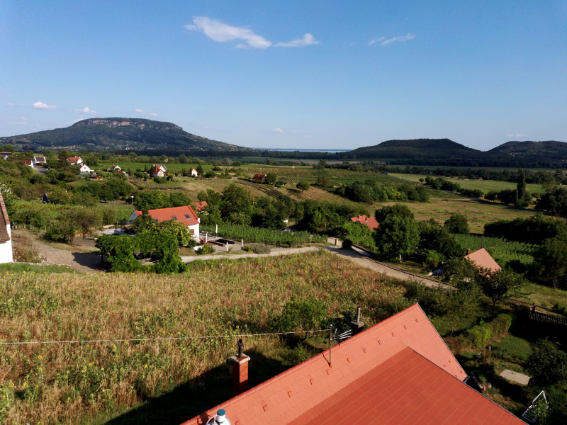 A kertben gyümölcsfák, egy hatalmas cseresznyefa, füge és pár sor szőlő is található, minden pontjáról lélegzetelállító tanúhegyes, és balatoni örök panorámában gyönyörködhetünk!
