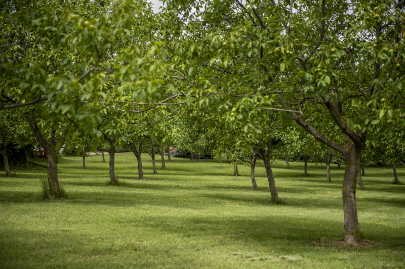 -Termő vegyes gyümölcsös (60db), öntöző rendszerrel.