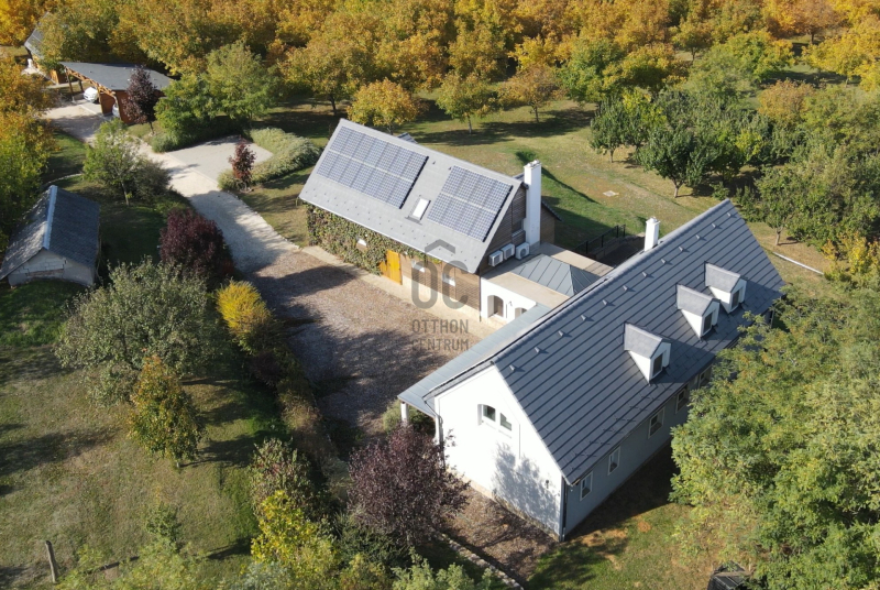- 2014-ben épített hőszigetelt tégla lakóingatlan, melynek össz nettó alapterülete 366 m2 (Fsz+Tetőtér+Télikert+Pince). Ebből a saját lakórész: Amerikai konyhás nappali, plusz 5 hálószoba, 2 fürdőszoba, háztartási helyiség. Panoráma ablakok, cserépkályha teszik nagyon egyedivé és hangulatossá. A vendégrészben: 4 darab saját fürdőszobás apartman. Elektromos és vegyes tüzelésű kazán, melyeket egy nagy méretű puffer tartály egészít ki, plusz légkondik.