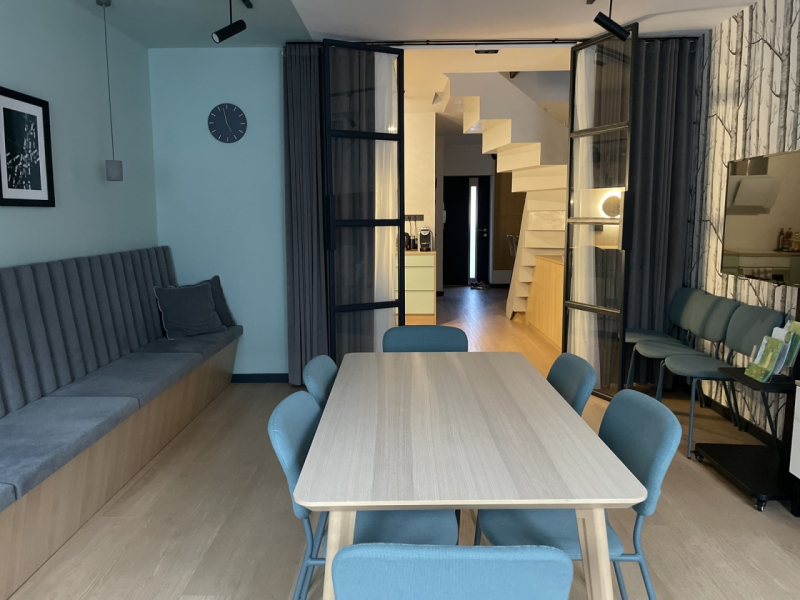 Eötvös utca Andrássy úthoz közeli részén frekventált helyen fekvő belső kétsszintes 100 m2-es tégla lakás eladó.
