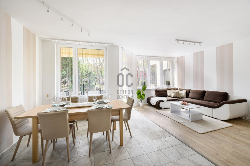 Földszint: 78,9 m², 2 szoba, lépcsőmentes megközelíthetőség, kerti kilépő.