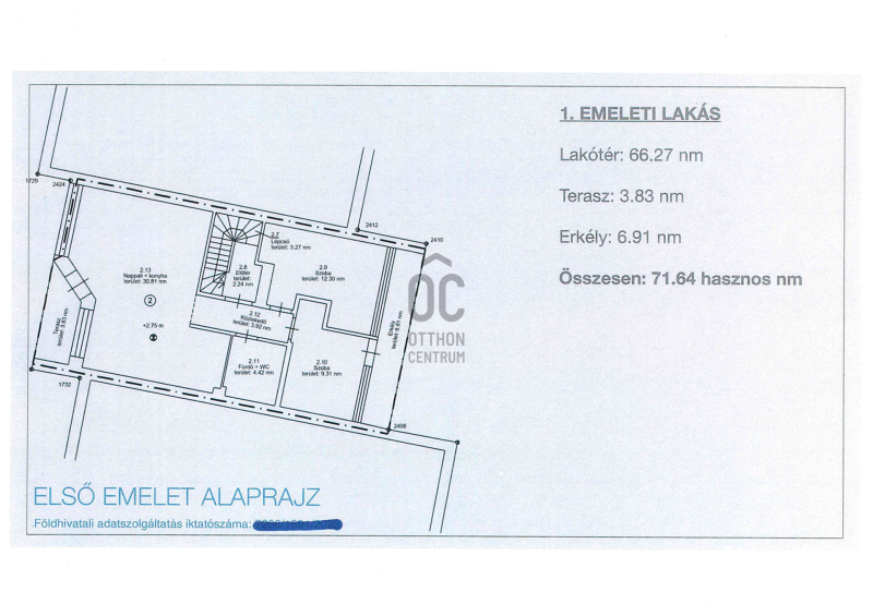 1. emelet: 71,64 m², 2 szoba, erkély, panorámás kilátás, kertkapcsolat.