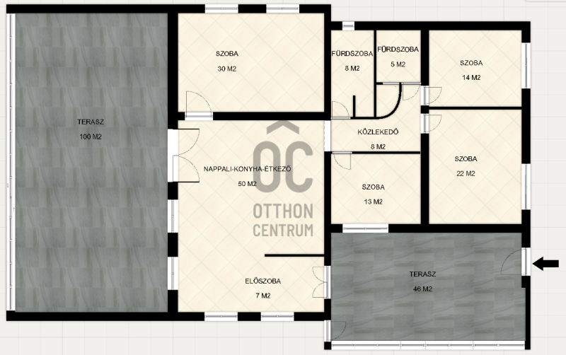 >> két hatalmas fedett terasz: 100 m² és 46 m²
