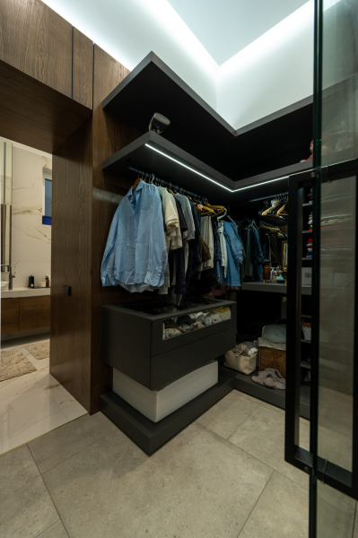 •Üvegfalú gardrób szoba – átjárható, impozáns