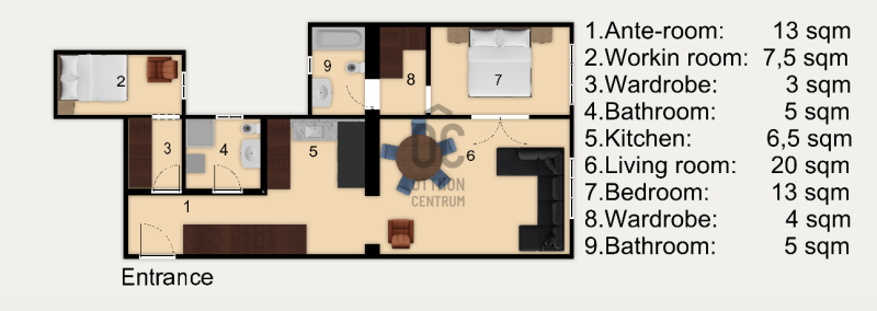 ✅ 3. Hálószoba + dolgozó + két gardrób = ritkaság a belvárosban