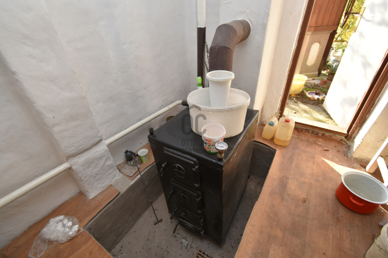 - Fűtése vegyes tüzelésű kazánnal történik, azonban az egyik szobában fatüzelésű cserépkályha,