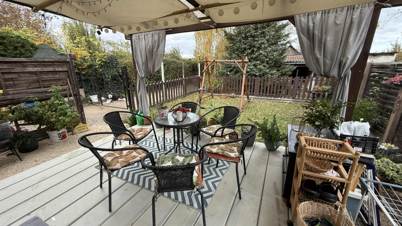 A kert nagyobb része zárt,melléképülettel,garázs kialakítása lehetséges.