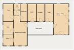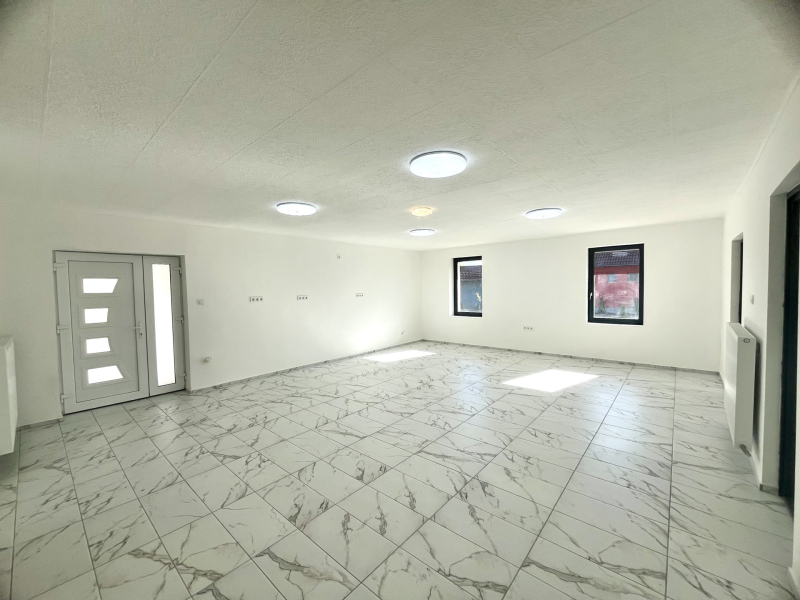 A 47,5 m²-es nappali–étkező–konyha tágas, világos központi élettérként szolgál. A konyha berendezése az új tulajdonosra vár, azonban minden szükséges kiállás előkészítve található.