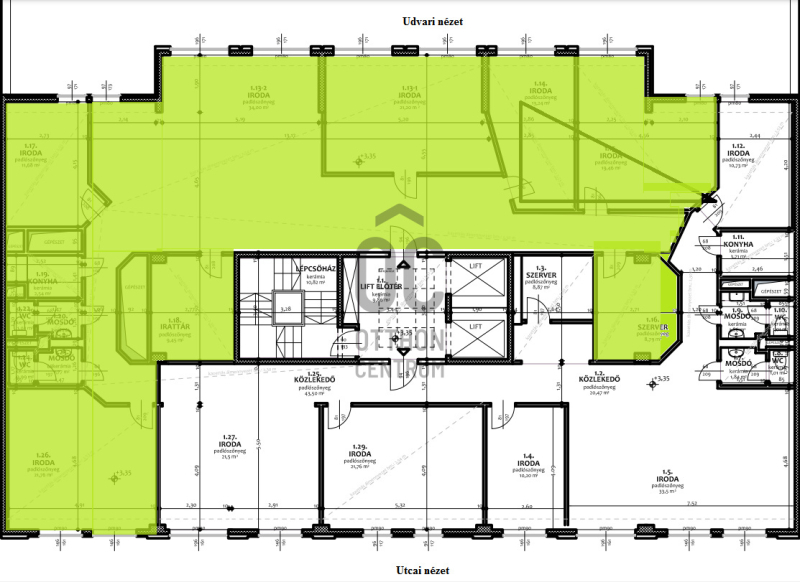 Teljesen elkülönített, zárható irodai blokkok, saját teakonyhával, férfi- női mosdókkal és szerverszobával kialakított bérlemény várja hosszabb távú bérlőjét.