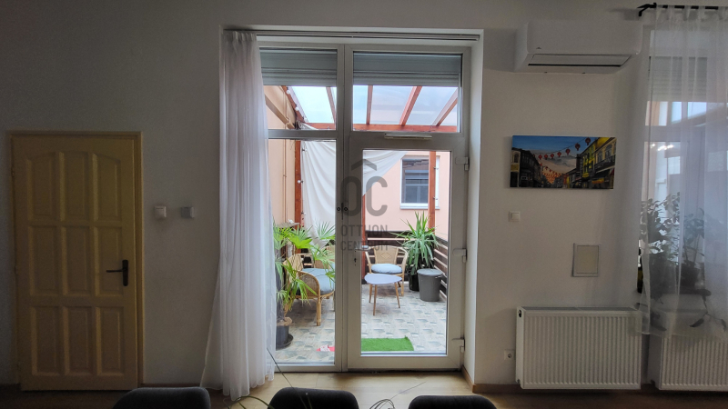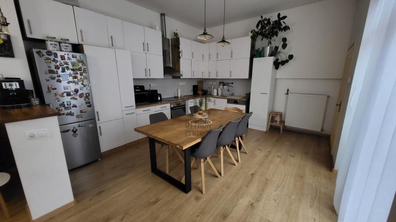 Debrecen kedvelt belvárosi részén eladó egy kitűnő állapotú és elrendezésű, 90 m²-es, napfényes házrész önálló terasz kapcsolattal.