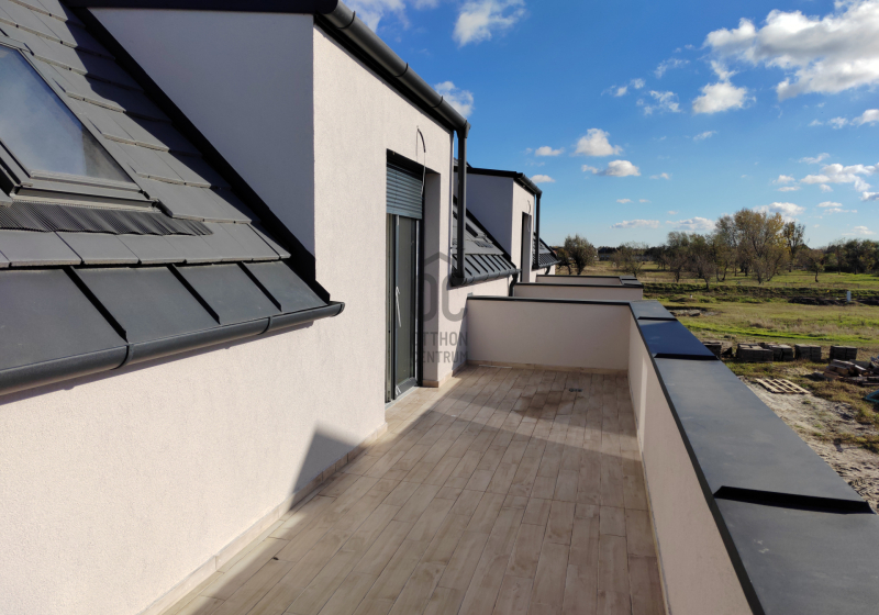 Nappali + 3 szobás, belső kétszintes lakás. A lakáshoz tartozik egy 8 nm-es fedett terasz és egy 6 nm-es tornác is. Az ingatlanhoz tartozik egy kötelezően megvásárolandó gépkocsi beálló, melynek ára 1,5 millió forint valamint saját udvarrésszel is rendelkezik. A lakóparkon belül játszótér, pihenőpark kerül kialakításra.