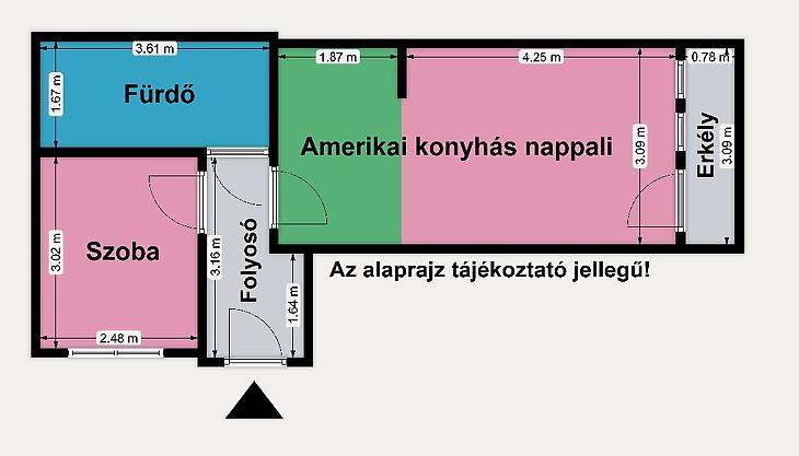 Az ingatlan amerikai konyhás nappaliból, külön hálószobából és fürdőszobából áll, jól átgondolt, praktikus elrendezéssel. A világos nappalihoz kapcsolódó erkély kellemes pihenőhelyet kínál.