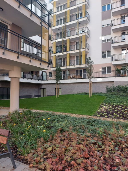 Kiváló lokáció, zöld környezet, Városliget, WestEnd is 13 perc sétálva. Az épület alatt üzletek boltok szolgálják a kényelmet, az udvar elegánsan parkosított.
