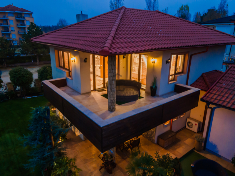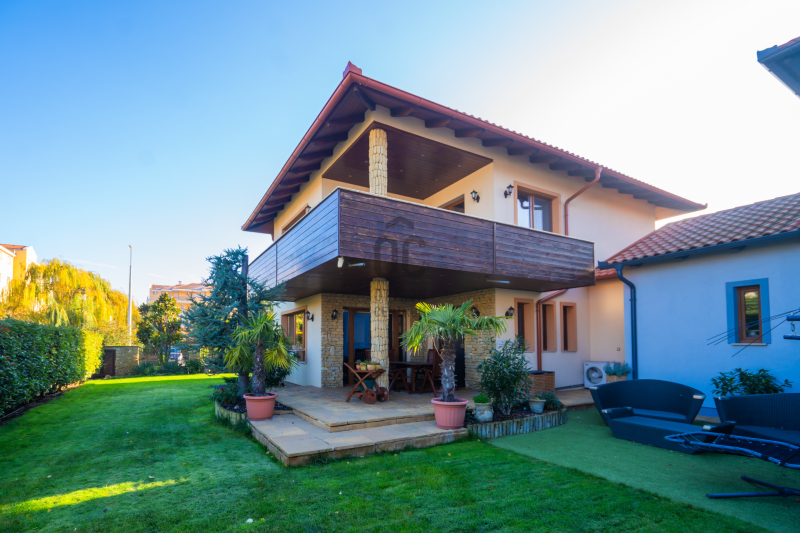 Az épület homlokzatát ürömi kő borítja, a kertet automata öntözőrendszer és alkonykapcsolós világítás teszi tökéletessé.