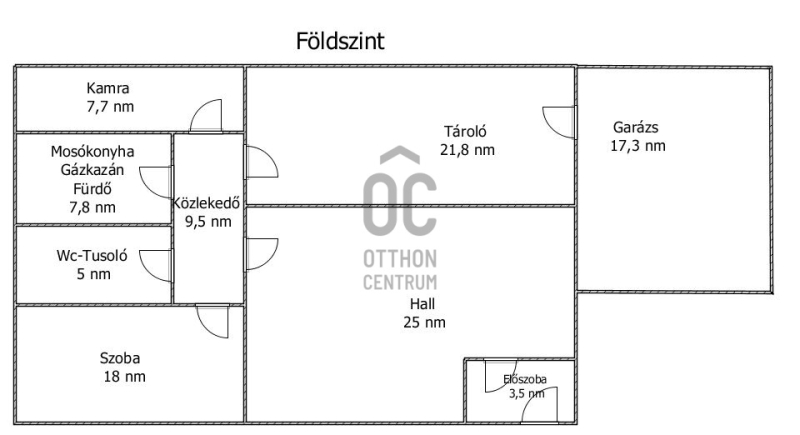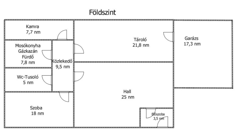 - Földszint: előszoba, fogadótér - lépcsőház, szoba, közlekedő, fürdőszoba, mosókonyha/ gépészet, kamra, tároló, garázs,
