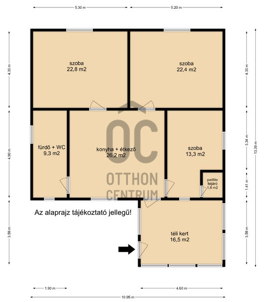 A tetőtér beépíthető, ami további lehetőségeket kínál — akár plusz hálószoba, dolgozószoba vagy vendégrész kialakítására.