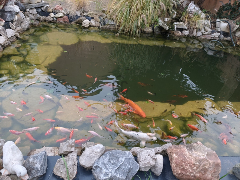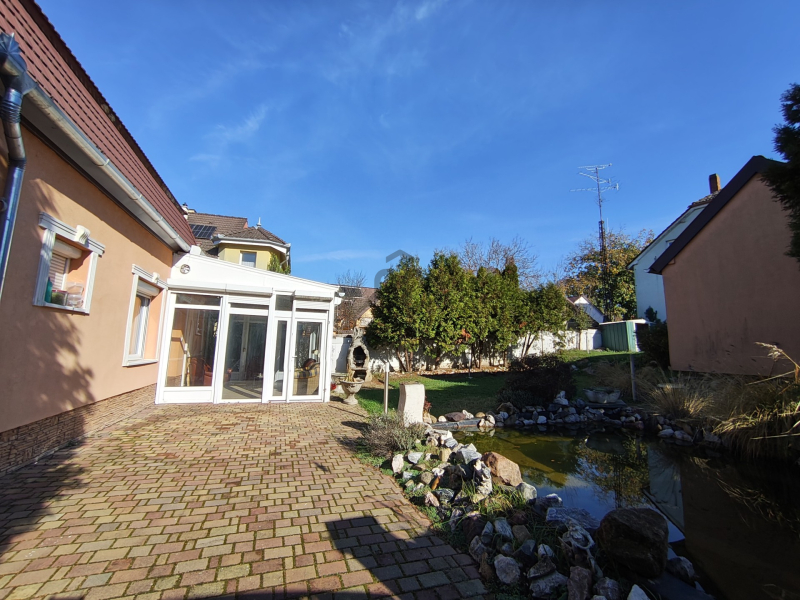 A kert különlegessége a hangulatos halastó, amely nemcsak látványos elem, hanem a pihenés és a kikapcsolódás tökéletes helyszíne is.