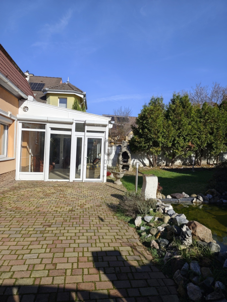 A ház folytatásaként egy fűthető, tágas télikert kapott helyet, mely a nappali meghosszabbításaként szolgál, és egész évben ideális pihenőhely.