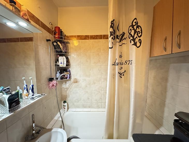 A fürdőszobában a burkolat cserélve lett és káddal rendelkezik, a WC egy külön helyiségben található.