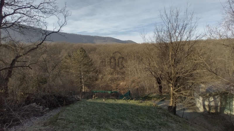 A telek autóval 5 percnyire a buszmegállótól, gyalogosan 20–30 perc sétára található.