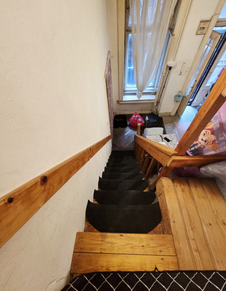 Budapest 8. kerület, Somogyi Béla utcában eladó egy 68 nm hasznos alapterületű, belső kétszintes lakás egy klasszikus, körfolyosós polgári ház első emeletén.