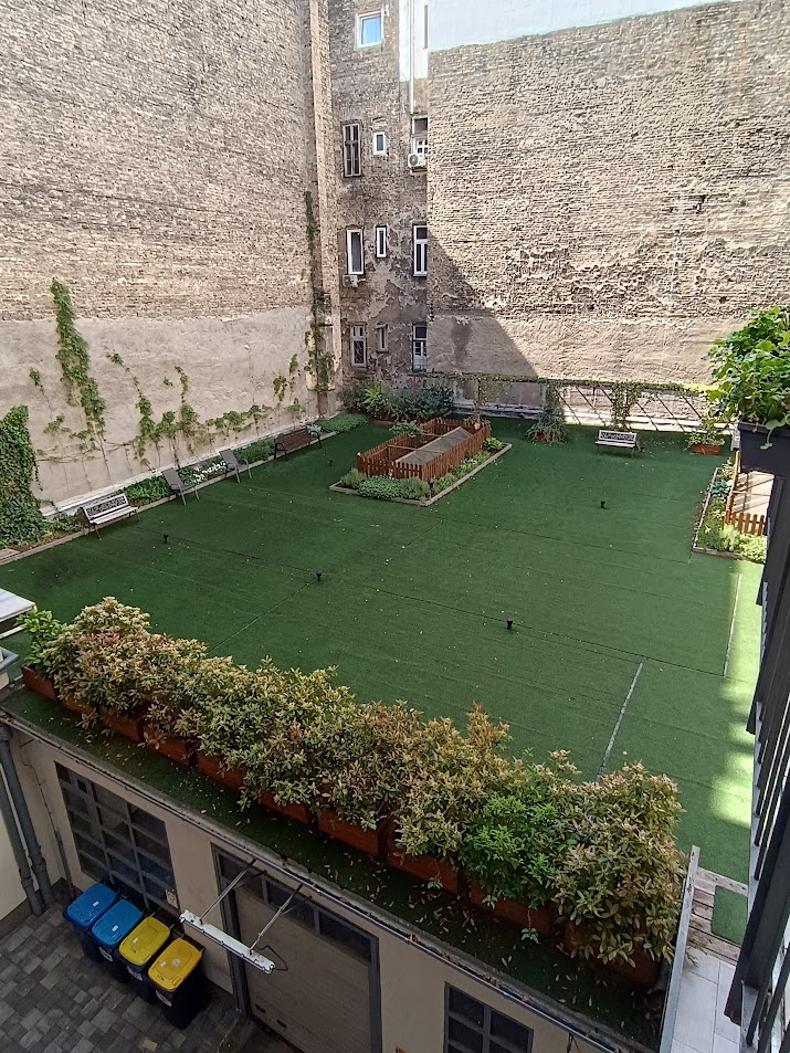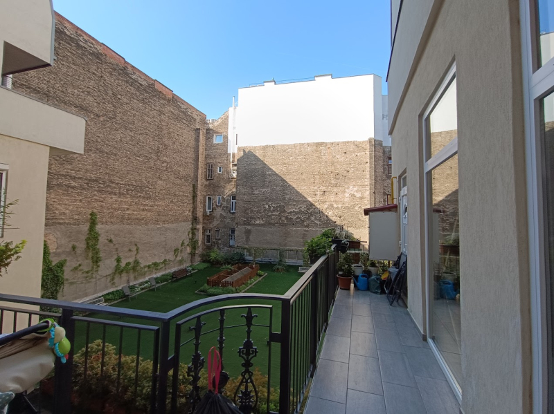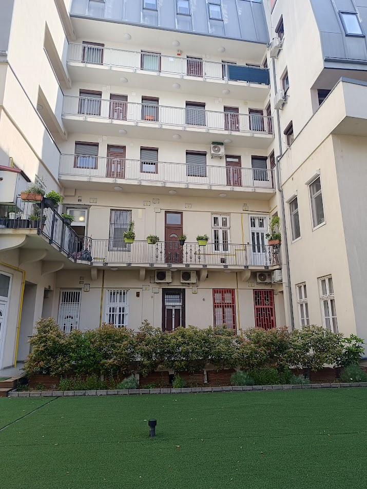 Az ingatlan egy gyönyörűen felújított, liftes társasház 2. emeletén található. A társasház belső udvara első emeletén, műfüves, parkosított terület lett kialakítva az ott lakók részére.