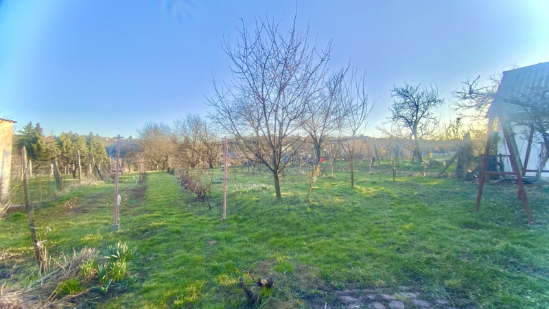 A gondozott kertben többféle gyümölcsfa található: cseresznye, őszibarack, szilva, alma és diófa.