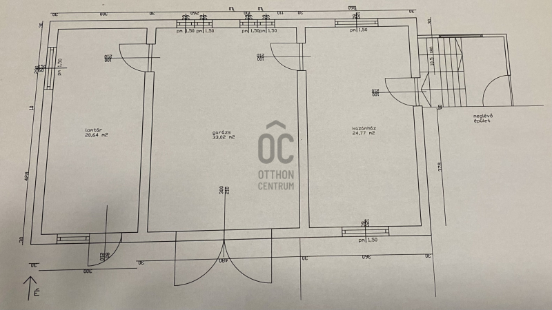 A lakótérből is megközelíthető alagsor kb. 60 m²-es, ahol több tárolóhelyiség és garázs kapott helyet — ideális megoldás akár barkácsoláshoz vagy tároláshoz.