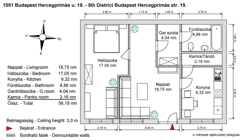 Megvételre kínálunk egy kivételes, 55 négyzetméteres, 2 szobás lakást Budapest szívében, Lipótvárosban, a Hercegprímás utcában. Ez a használt ingatlan nem csupán egy otthon, hanem egy életstílus, amely a városi élet minden előnyét magában hordozza. A lakás világos, jó elosztással rendelkezik, így ideális választás egyedülállók, párok, fiatalok, vagy akár befektetők számára is, akik a belvárosi életvitel előnyeit keresik. A lakás állapota jó, a fűtése gázkonvektorral és elektromos fűtéssel megoldott, míg a nyári hónapokban a klíma biztosítja a kellemes hőmérsékletet. Az ingatlan tehermentes. Közös költsége 9075,- Ft/ hó. A lakás nézete belső udvari, ennek ellenére mégis világos. A házban lift van. Az épület állapota Jó. A központi elhelyezkedés lehetővé teszi, hogy a város legjobb szolgáltatásai, éttermei és szórakozóhelyei karnyújtásnyira legyenek, miközben a környék ellátottsága kiváló. A közlekedés szempontjából a lakás kitűnő lehetőségeket kínál. A közelben található metró- és buszmegállók, valamint a villamosvonalak könnyedén elérhetők, így a város bármely pontja gyorsan és egyszerűen megközelíthető.