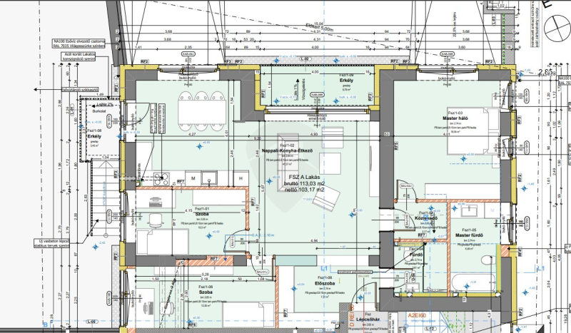 Prémium anyagok: olasz csempe, fafurnér parketta, Hansgrohe és Laufen szaniterek