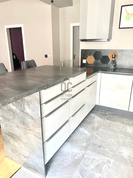 -A tágas nappali modern, beépített konyhával és étkezőrésszel ideális helyszín családi vacsorákhoz vagy baráti összejövetelekhez.