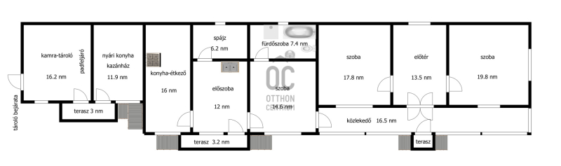 Megvételre kínálok Kékcsén főutcán, egy, a 60 -as években vályogból épült, cseréppel fedett, majd 1979 -ben szilikát falazattal bővített, lemeztetővel ellátott családi házat 2403 nm-es, 12 méter széles telken. Az ingatlan belső elrendezése átgondolt, a szobákat laminált padlóval, a többi helyiséget (az előszobát, a konyha-étkezőt, a közlekedőt a nappalit és a wc-fürdőszobát) járólappal burkolták. A nyílászárók még az eredetiek, fából készültek, az ablakokat redőnnyel szerelték fel. A melegről központi fűtés gondoskodik, ami gáz és vegyes kazánnal is működtethető, de az épületben két cserépkályha, továbbá egy gázkonvektor is található. Az udvaron, az épület folytatásaként nyári konyhát (benne a kazánokkal) valamint kamra-tárolót alakítottak ki.