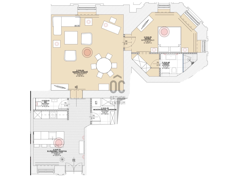A nettó 76 m²-es lakás minden igényt kielégít. Tágas, nagy belmagassággal rendelkező szobák, nagyvonalú terek jellemzik az ingatlant.