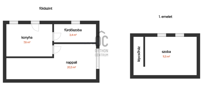 Lakótér: 41 m², praktikus belső kétszintes elrendezés (Alsó szint: konyha+étkező,fürdő+wc,nappali, Felső szint: 1 külön szoba).