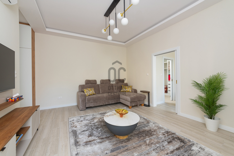 Budapest V. kerületében, Parlament közelében kiadó egy igényesen és frissen felújított, erkélyes lakás egy rendezett, liftes társasházban. A lakás tágas nappaliból, egy hálószobából és egy külön gardróbszobából áll, minden helyiség kiváló állapotban van. Teljes berendezéssel, gépesítéssel kiadó, ide valóban csak a személyes dolgait kell hoznia! Modern konyha, letisztult fürdőszoba, új nyílászárók és igényes burkolatok teszik komfortossá az otthont. Nyugati tájolású, gyönyörű napfényes lakás, alacsony rezsije van.