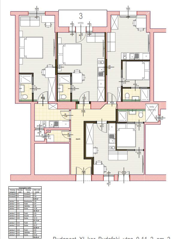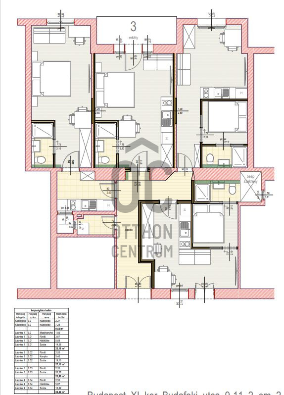 A lakásban 6 szoba található, 4 fürdőszoba melyek praktikus elrendezésének köszönhetően ideálisak lehetnek befektetőknek. A lakás fűtése elektromos fan-coil rendszerrel működik, így a téli hónapokban is kellemes hőmérsékletet biztosít.