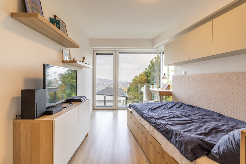 A gyerekszobákban van hely a rendnek és a játéknak is, szülői háló pedig a kert felé fordul — itt a csend nem üresség, hanem nyugodt megérkezés.