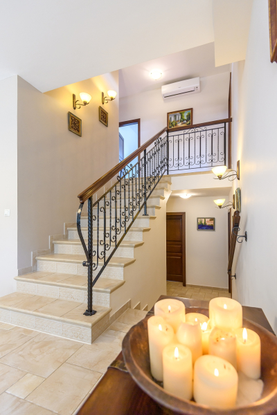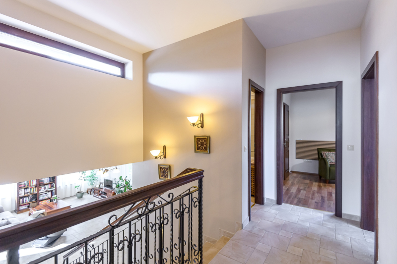 - kovácsoltvas korlát az emeletre vezető lépcsőn – igazi éke a háznak